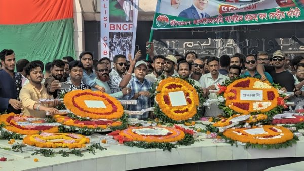 ৭ নভেম্বর জাতীয় বিপ্লব ও সংহতি দিবসে মোহাম্মদপুর থানা স্বেচ্ছাসেবক দলের পুষ্পস্তবক অর্পণ ও দোয়া মাহফিল অনুষ্ঠিত।